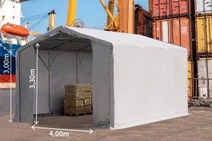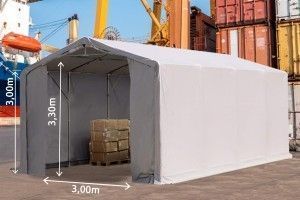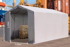 - Techo y Paneles laterales en una sola de lona PVC: 550 g/m²