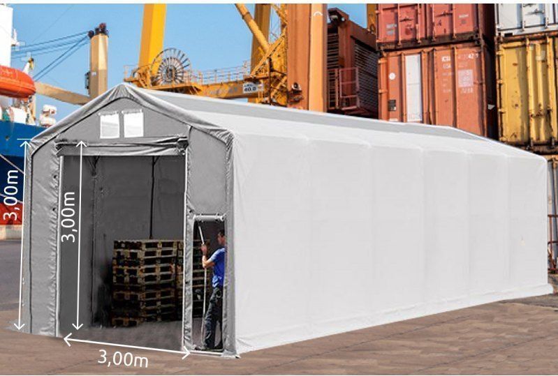 Ce modèle de hangar peut être utilisé tout au long de l'année. Structure en acier galvanisé fixée par vissage, bâches épaisses en PVC de haute qualité recouvrant l'ensemble de la structure, contribuant à une meilleure stabilité.