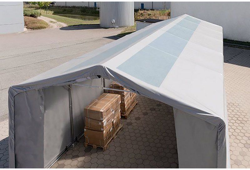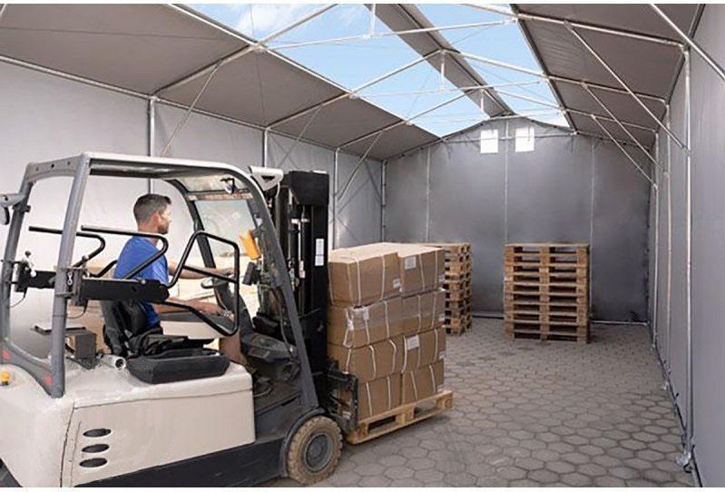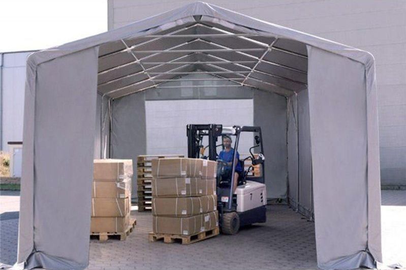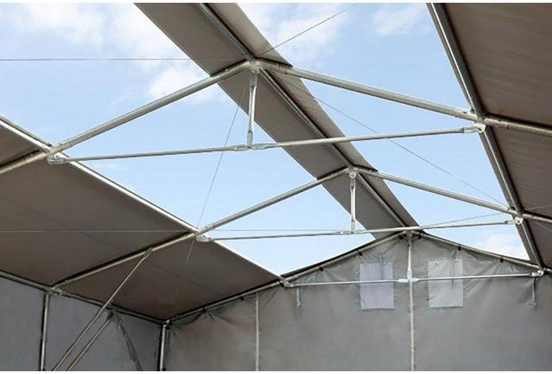 Ce modèle de hangar peut être utilisé tout au long de l'année. Structure en acier galvanisé fixée par vissage, bâches épaisses en PVC de haute qualité recouvrant l'ensemble de la structure, contribuant à une meilleure stabilité.