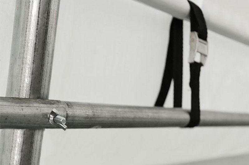 - Système de sangles professionnelles pour tendre la toile de la tente.
