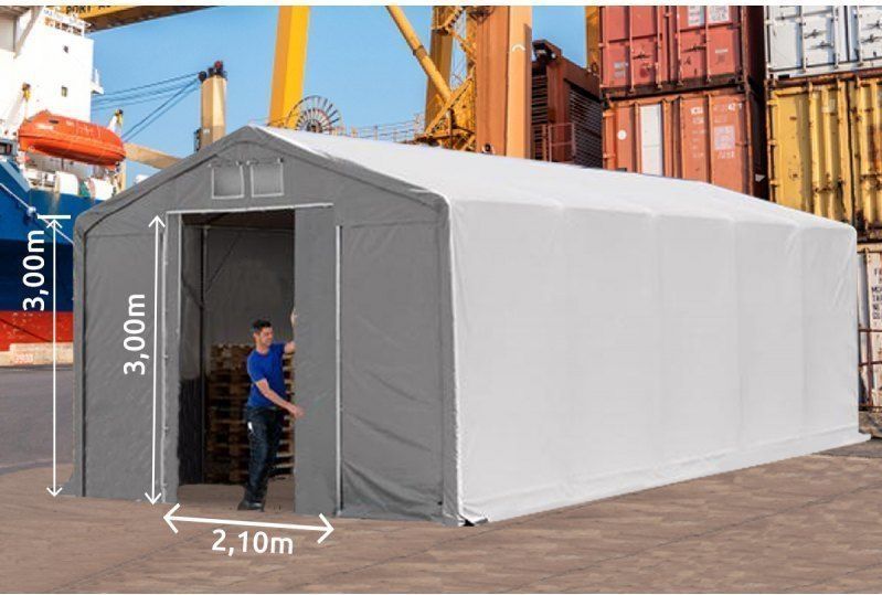 Ce modèle de hangar peut être utilisé tout au long de l'année. Structure en acier galvanisé fixée par vissage, bâches épaisses en PVC de haute qualité recouvrant l'ensemble de la structure, contribuant à une meilleure stabilité.