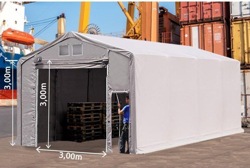 Ce modèle de hangar peut être utilisé tout au long de l'année. Structure en acier galvanisé fixée par vissage, bâches épaisses en PVC de haute qualité recouvrant l'ensemble de la structure, contribuant à une meilleure stabilité.