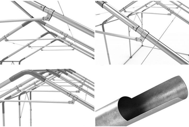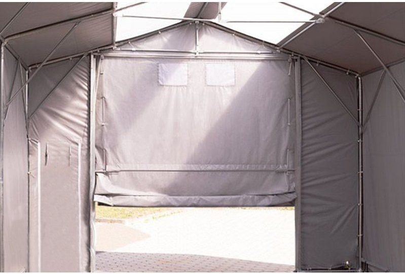 Ce modèle de hangar peut être utilisé tout au long de l'année. Structure en acier galvanisé fixée par vissage, bâches épaisses en PVC de haute qualité recouvrant l'ensemble de la structure, contribuant à une meilleure stabilité.