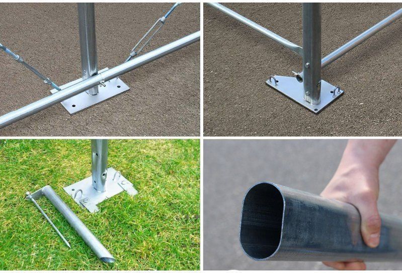 - Tubes arrondis en acier galvanisé : 70 x 43 mm