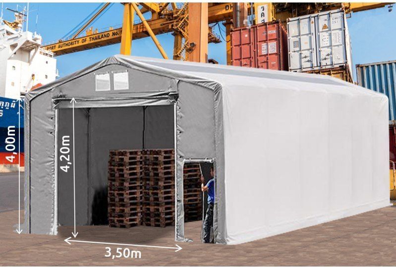 Ce modèle de hangar peut être utilisé tout au long de l'année. Structure en acier galvanisé fixée par vissage, bâches épaisses en PVC de haute qualité recouvrant l'ensemble de la structure, contribuant à une meilleure stabilité.