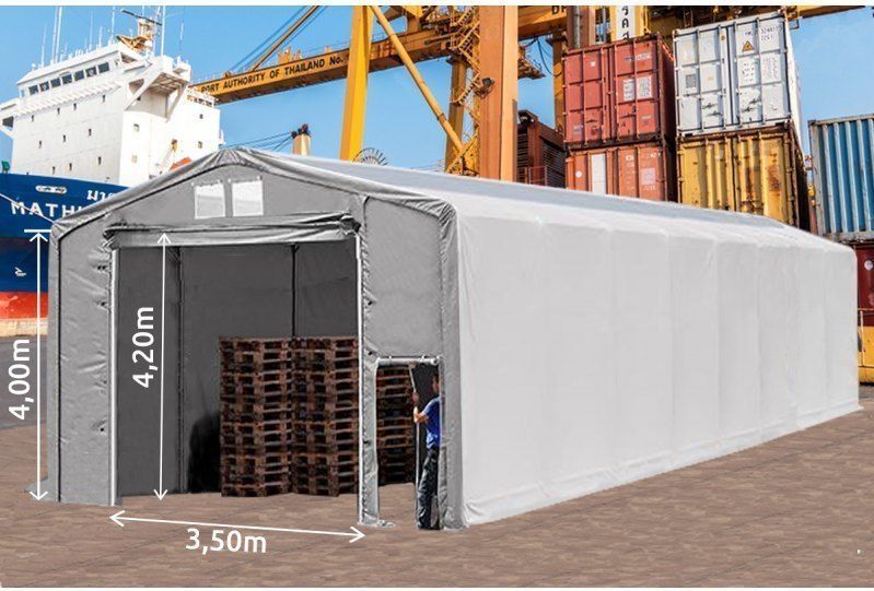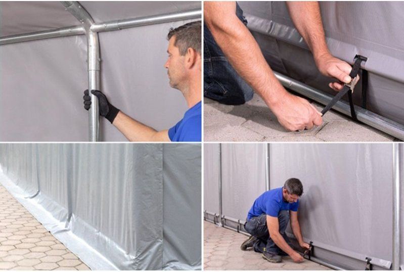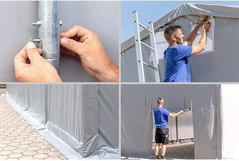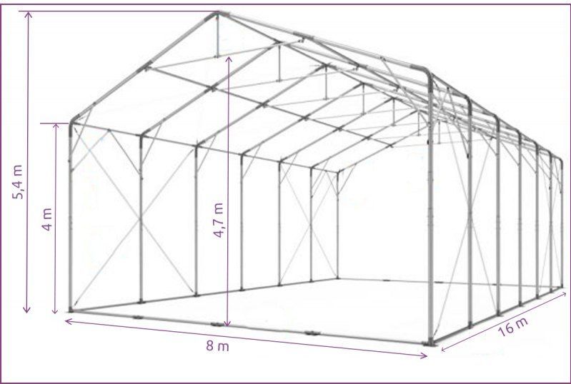 Ce modèle de hangar peut être utilisé tout au long de l'année. Structure en acier galvanisé fixée par vissage, bâches épaisses en PVC de haute qualité recouvrant l'ensemble de la structure, contribuant à une meilleure stabilité.