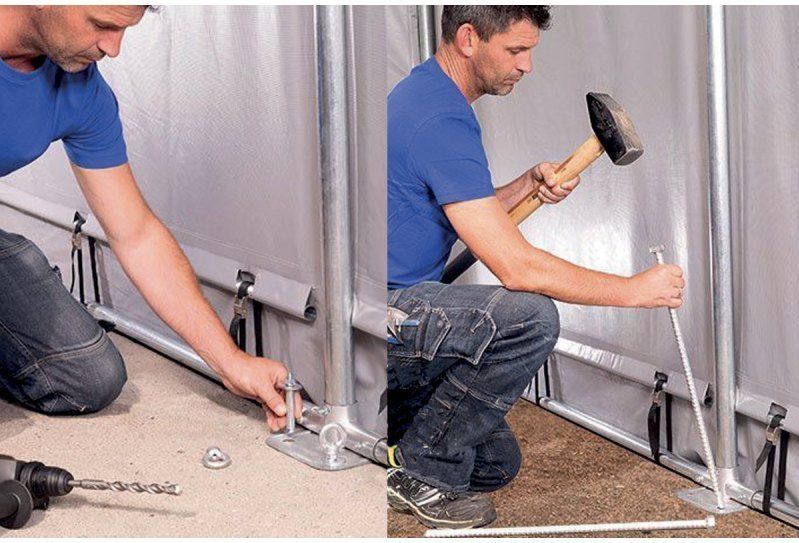 - Nous vous conseillons, une fois votre chapiteau monté, de le sécuriser à l’aide d’un kit d’arrimage.