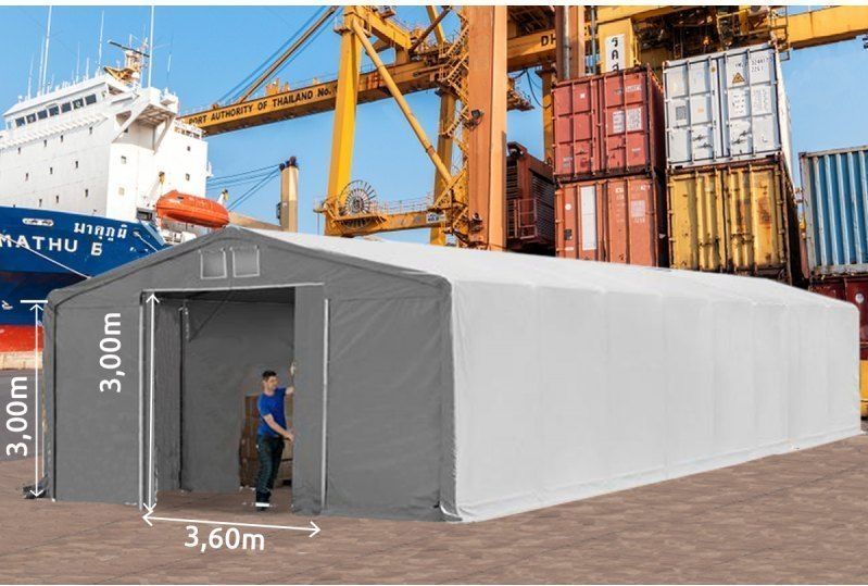 Ce modèle de hangar peut être utilisé tout au long de l'année. Structure en acier galvanisé fixée par vissage, bâches épaisses en PVC de haute qualité recouvrant l'ensemble de la structure, contribuant à une meilleure stabilité.