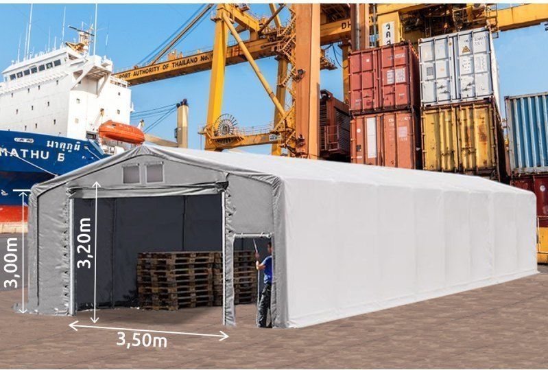 Ce modèle de hangar peut être utilisé tout au long de l'année. Structure en acier galvanisé fixée par vissage, bâches épaisses en PVC de haute qualité recouvrant l'ensemble de la structure, contribuant à une meilleure stabilité.
