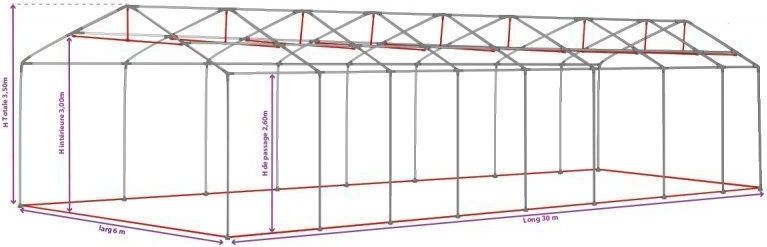 Tente de stockage 6 x 30 Qualité Pro XL FEU en 2.60m hauteur de passage