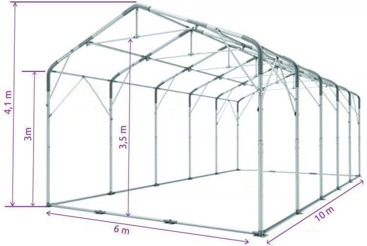 Tente de stockage 6 x 8 Qualité Pro XL en 3.00m hauteur de passage - Porte Coulissante
