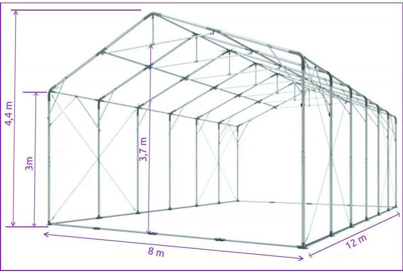 Tente de stockage 8 x 12 Qualité Pro XL en 3.00m hauteur de passage - Porte Fermeture Eclair