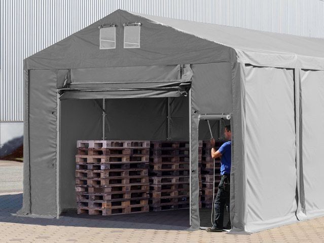 Tente de stockage 8 x 12 Qualité Pro XL en 3.00m hauteur de passage - Porte Store avec fenêtres dans le toit