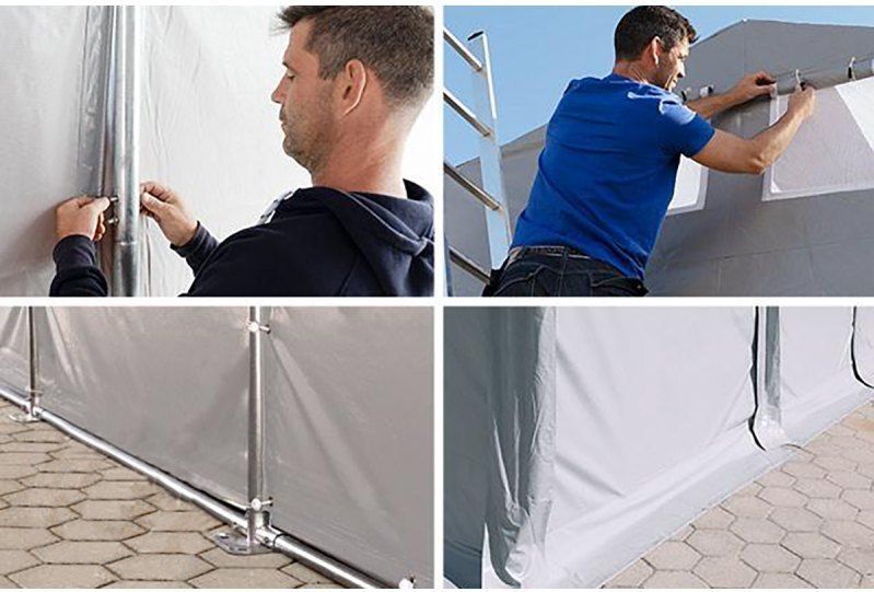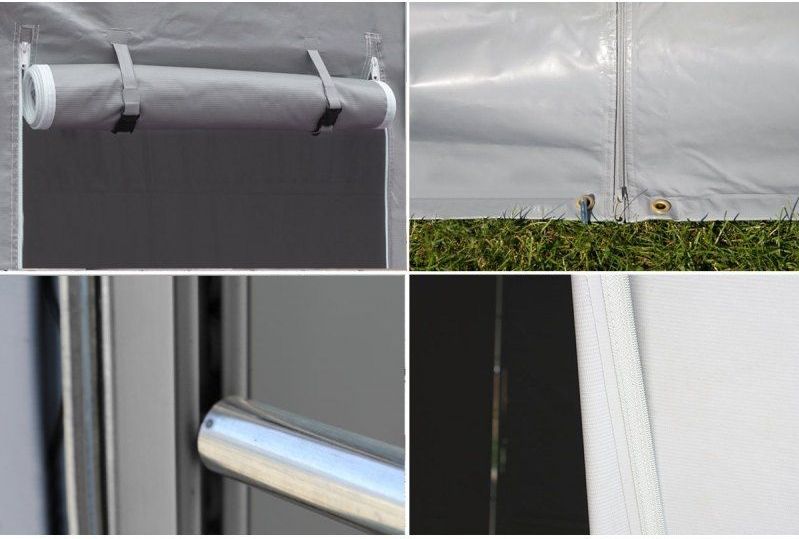 - Les bâches latérales et pignons peuvent être retirées entièrement ou partiellement