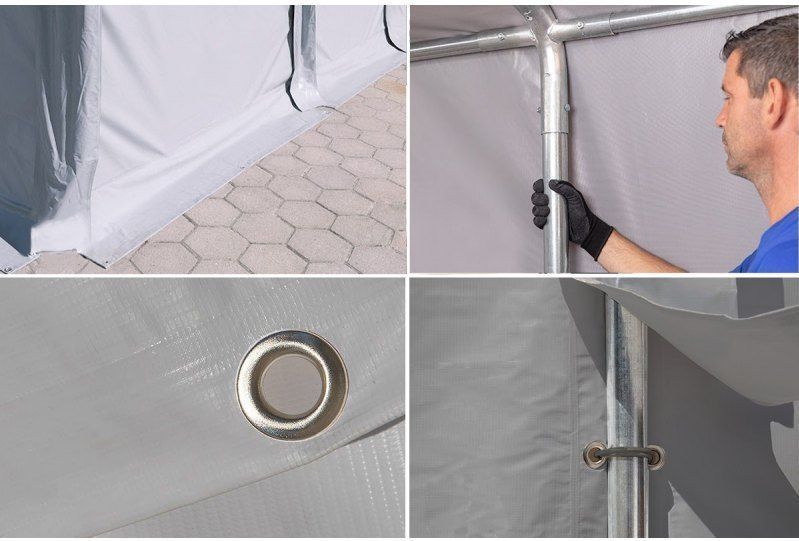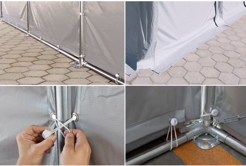 - Nous vous conseillons, une fois votre chapiteau monté, de le sécuriser à l’aide d’un kit d’arrimage.