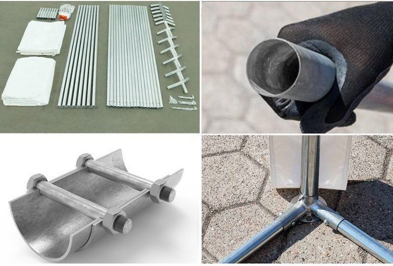 - Tubes et raccords en acier galvanisé: env. 50 mm et 54 mm