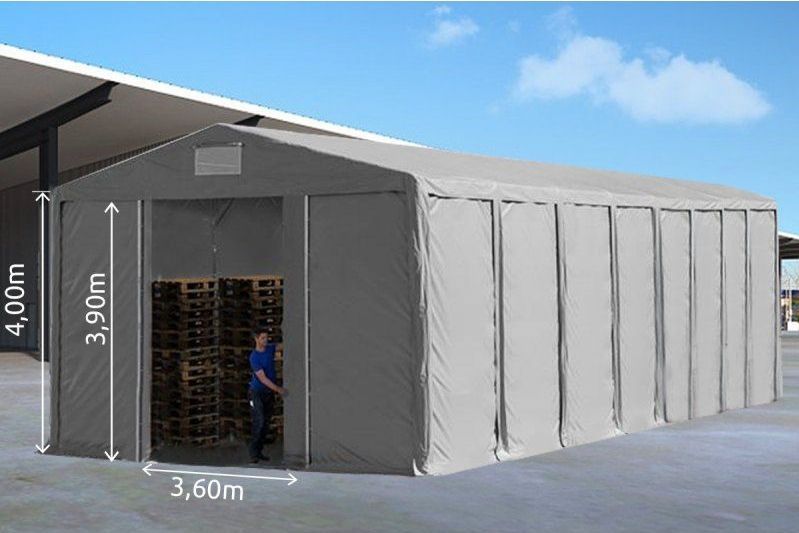 Tente de stockage 8 x 16 Qualité Pro XL en 4.00m hauteur de passage - Porte Coulissante